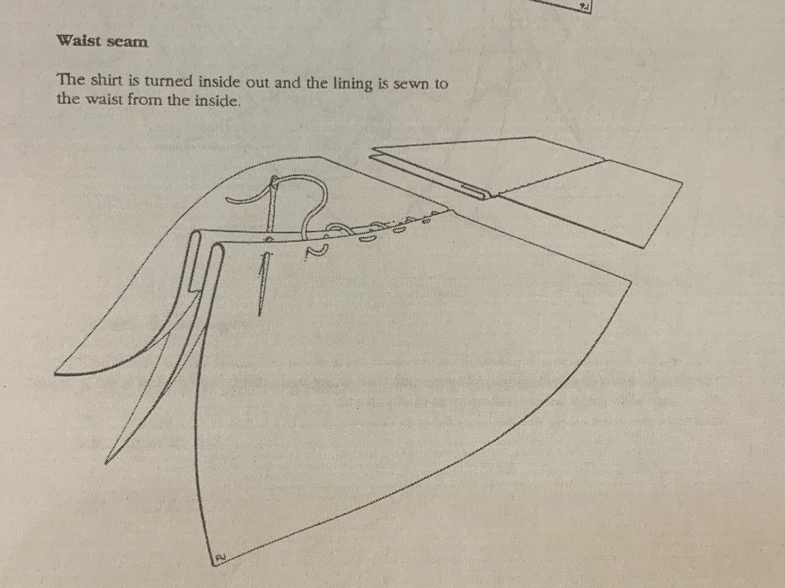 Doing the neckline last means that I need to work with the sides closed. That’s a short ride to Crazytown. I was going to do that tonight, and then I took a look at the instructions again, and saw that after the front and back fixation seams are worked, I should sew the lining to the outer layer at the waist.