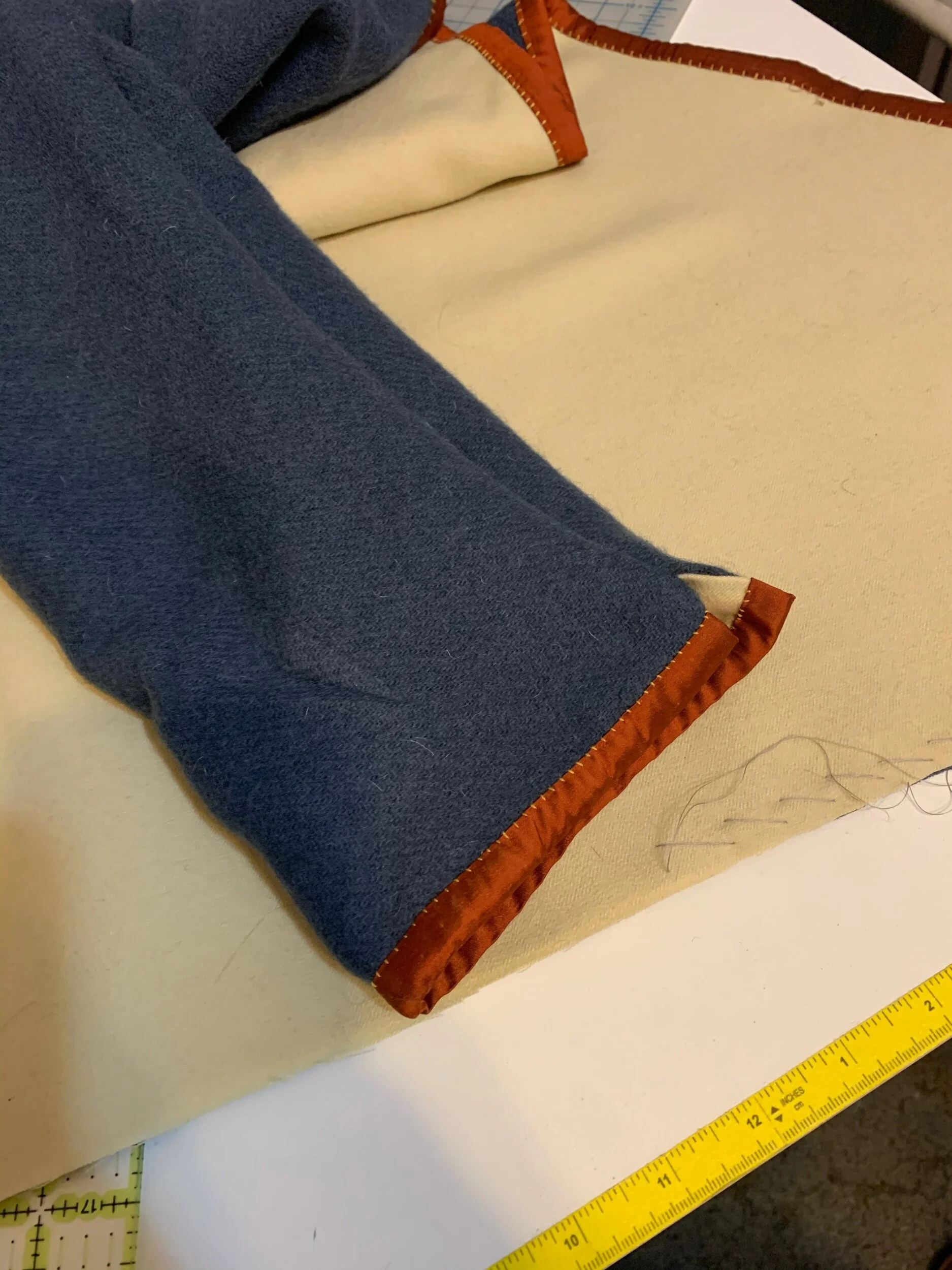 Of the three sections of the bottom hem, one is complete. One is ready to get started tomorrow, and every time I start the process I get better at it. The back should be really easy, since the binding of edges is fully complete. For now, though, it’s well past my bedtime. Night, y’all.