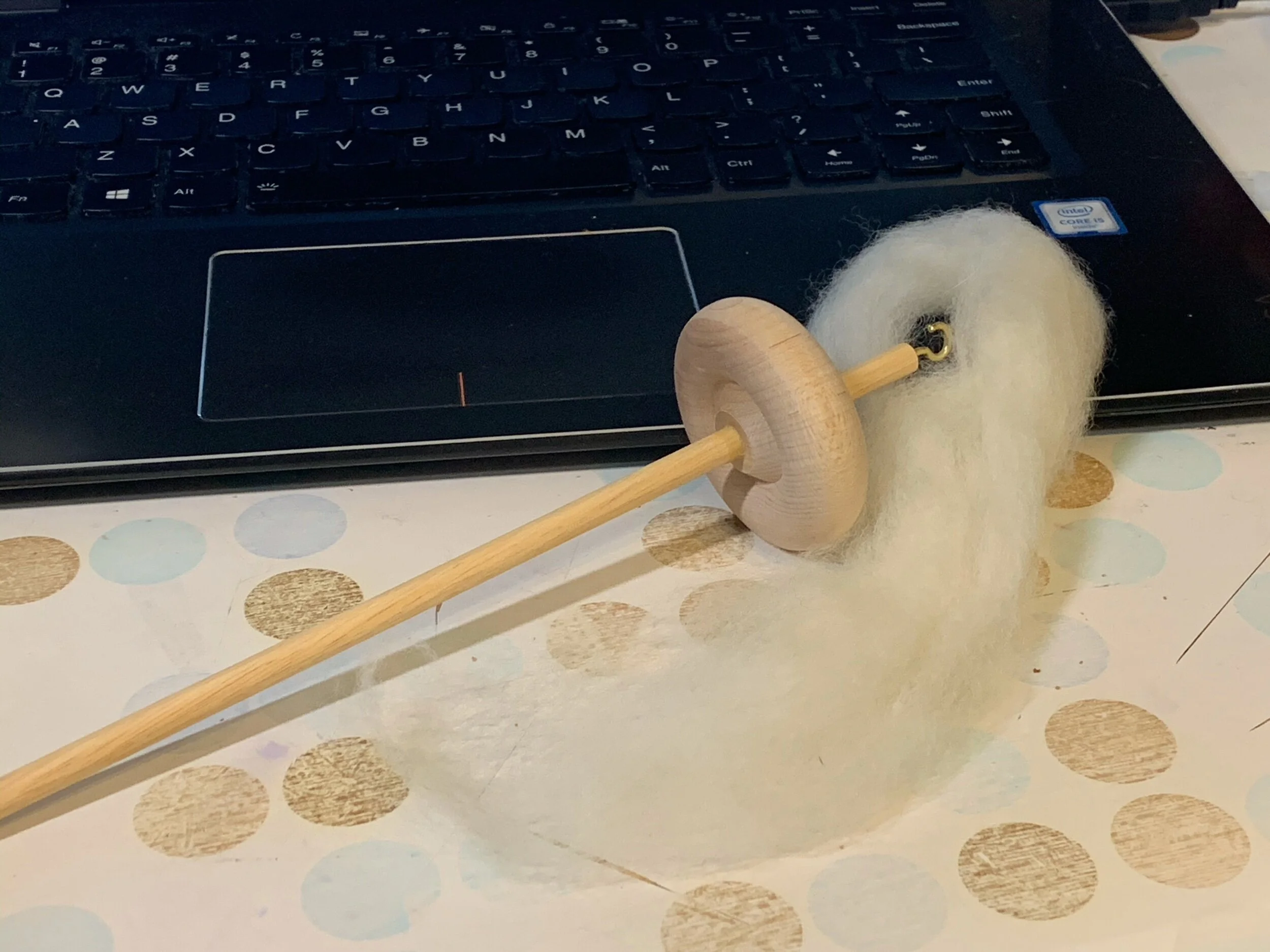 More spinning today. This time it was Blue-Faced Leicester (BFL) which is white, so I can pop it into a dye bath. I got ~330 inches of 2 ply thread made - just shy of ten yards. I even took video of myself making a leader to start spinning, but video editing is not my forte, so that will go up later.