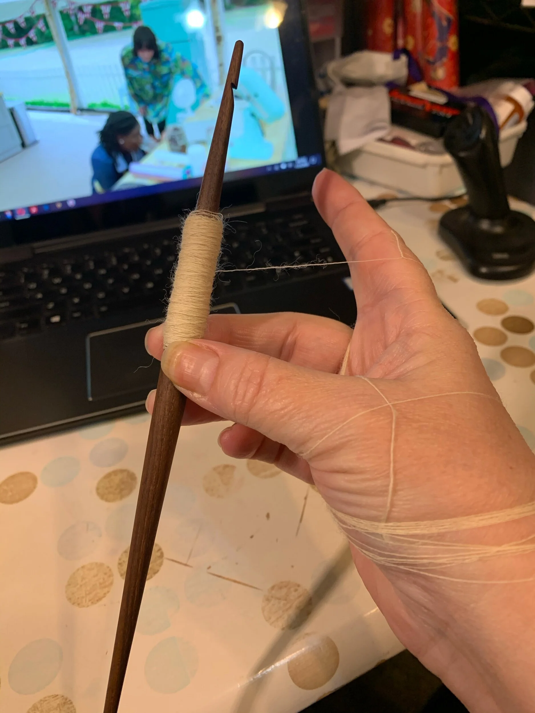 Okay, so remember that spiffy medieval-style spindle shaft I got? The one that worked so nicely with the ceramic spindle whorl?
