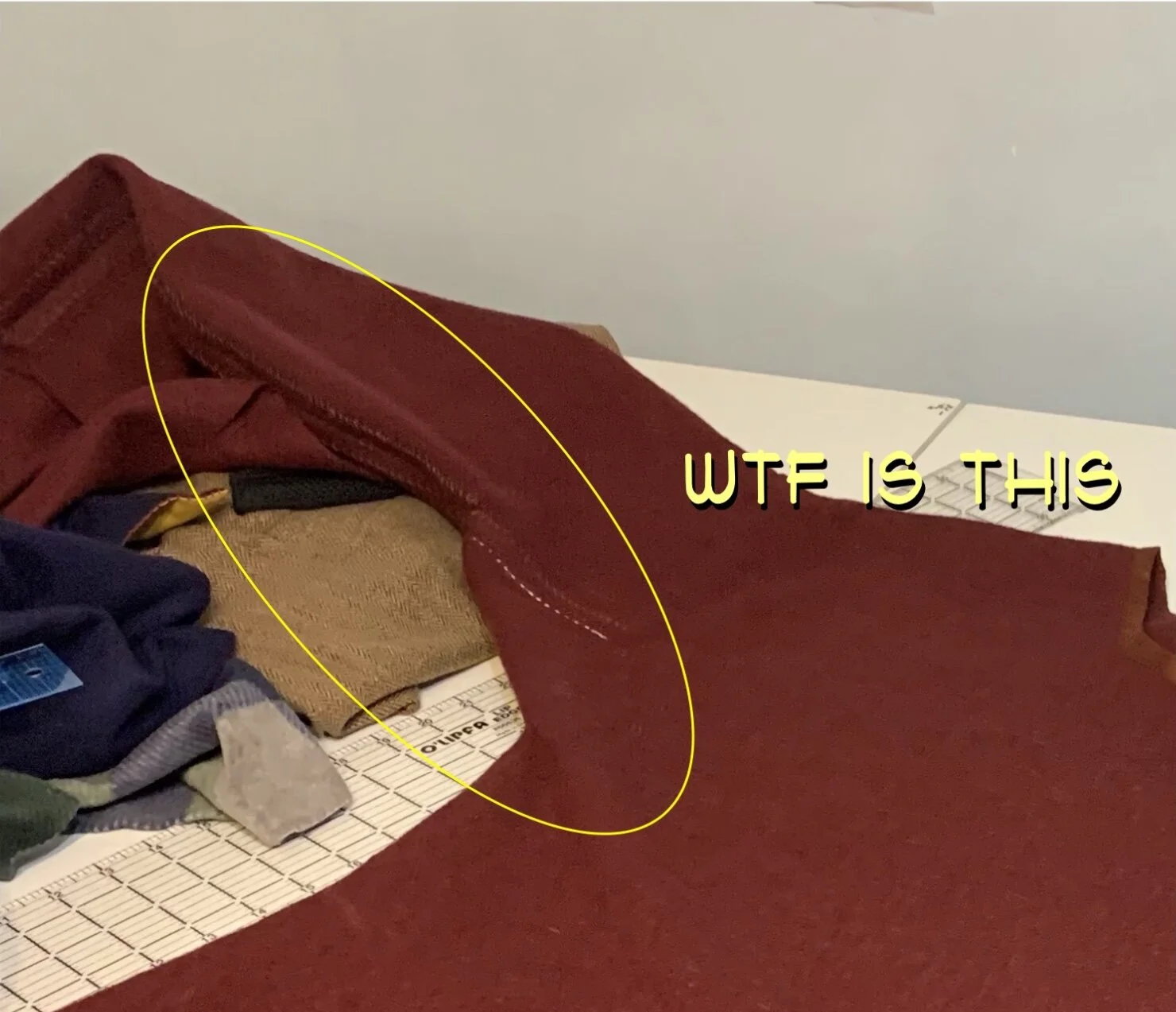 I skipped last night because I got frustrated. I was all done with the second sleeve. I trimmed and finished the seam allowances on that side and it looked fantastic. I laid it out, started taking pictures, and…
