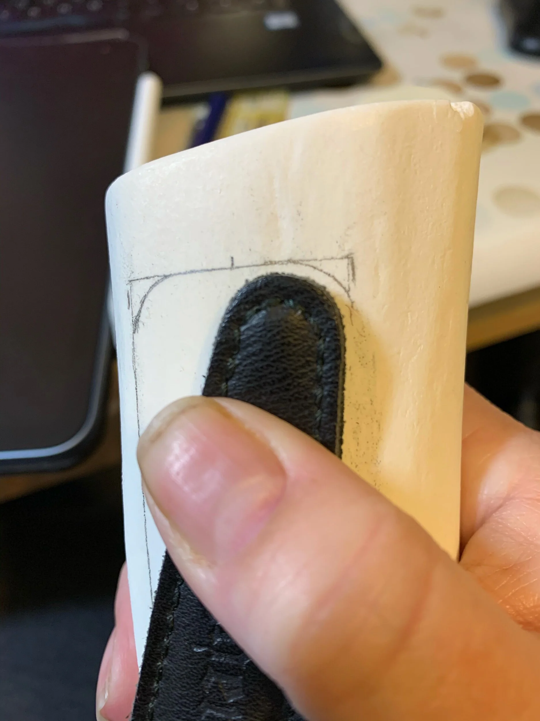 I resized the photo so the black bars were 1 cm wide, and then just used a tape measure to make the measurements you can see on the screen. I drew a box on the bone I plan to use (it's part of a bovine femur I bought at PetSmart), and then drew the buckle inside it.