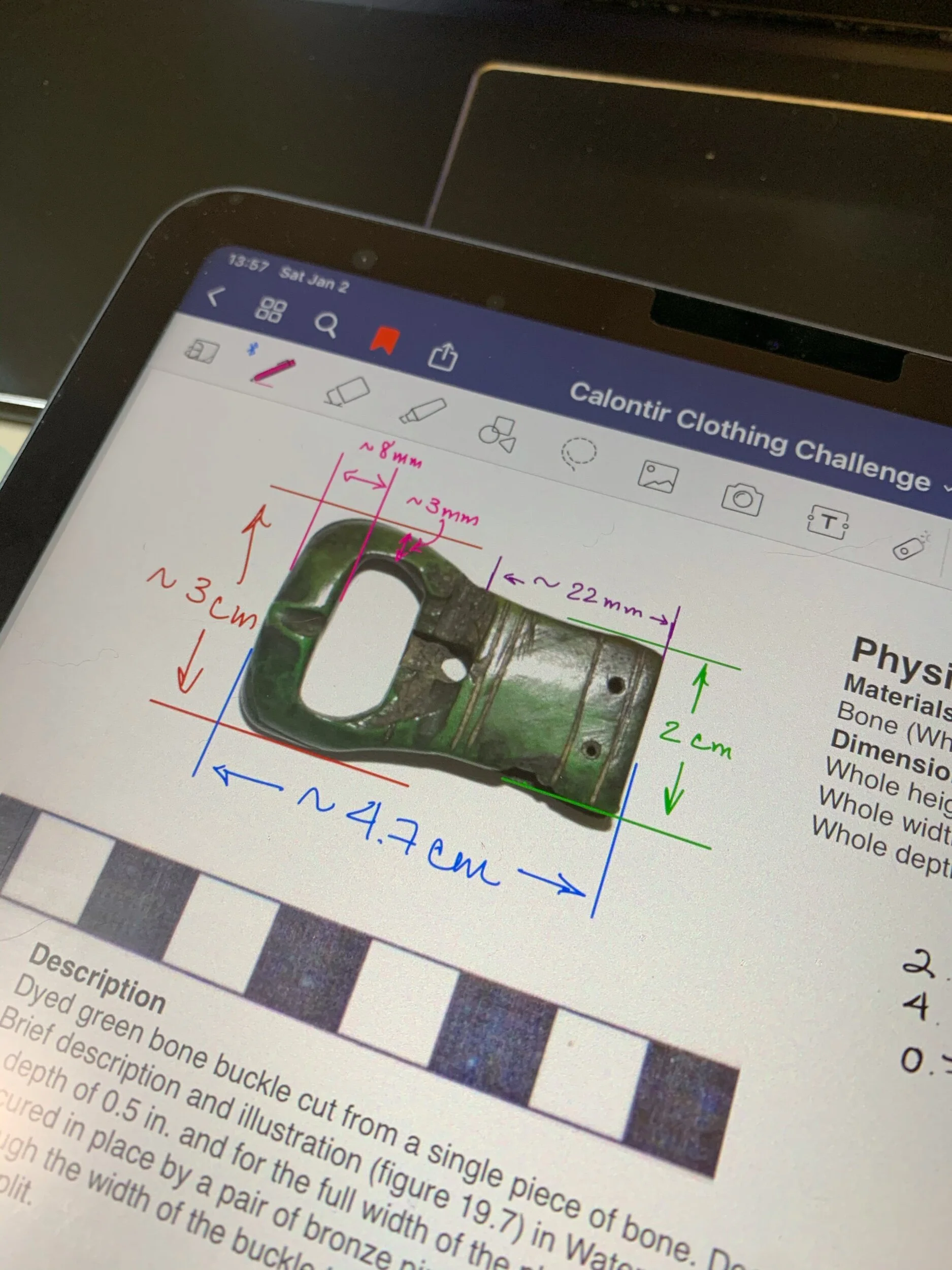 I started the last mock-up for the last piece of clothing today. But before that, because task avoidance is my specialty, I worked a bit on the accessory for my ensemble: a bone buckle for a belt.