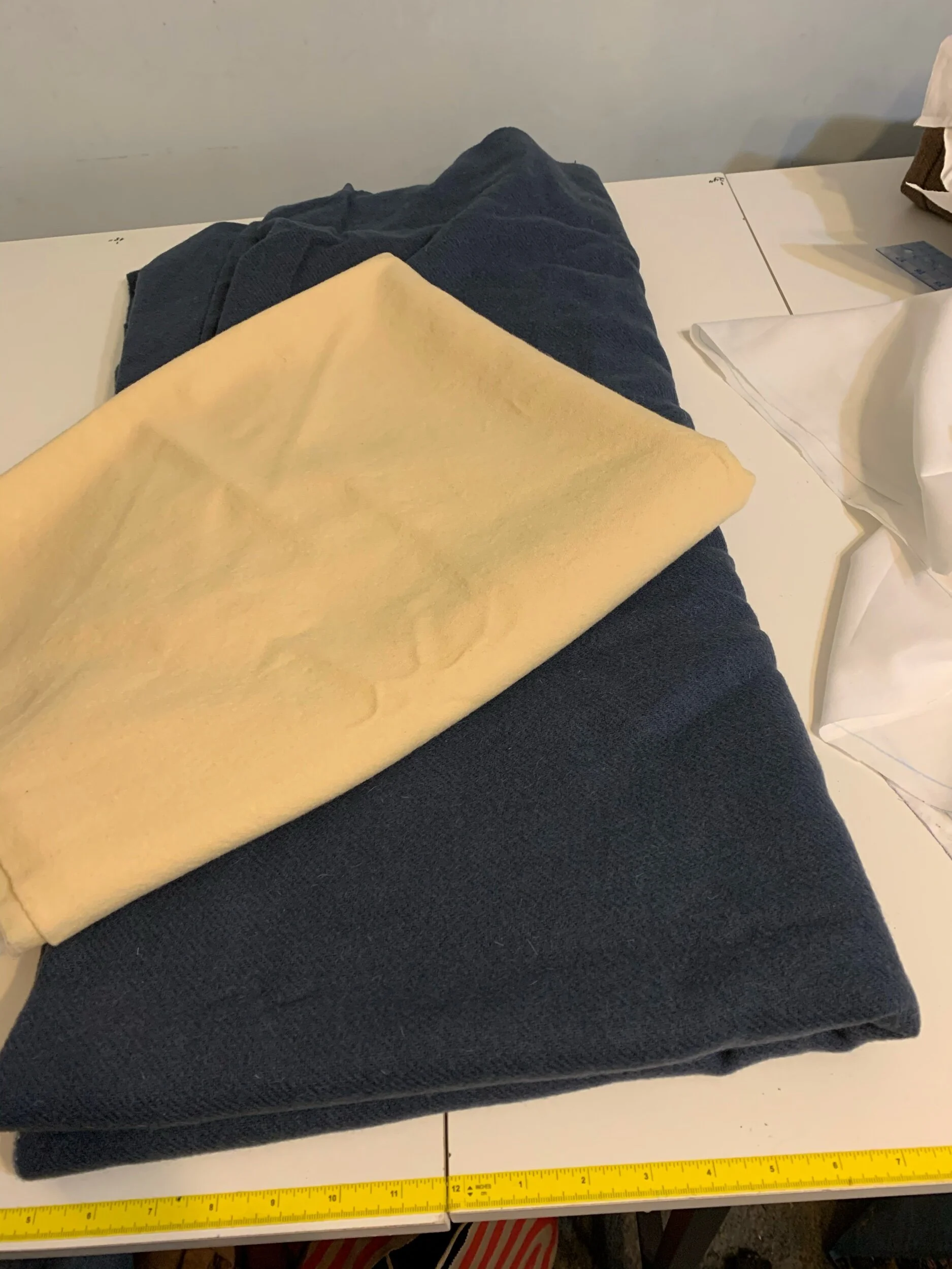 And I'm planning to make it out of this blue wool, with the body lined with the yellow.
