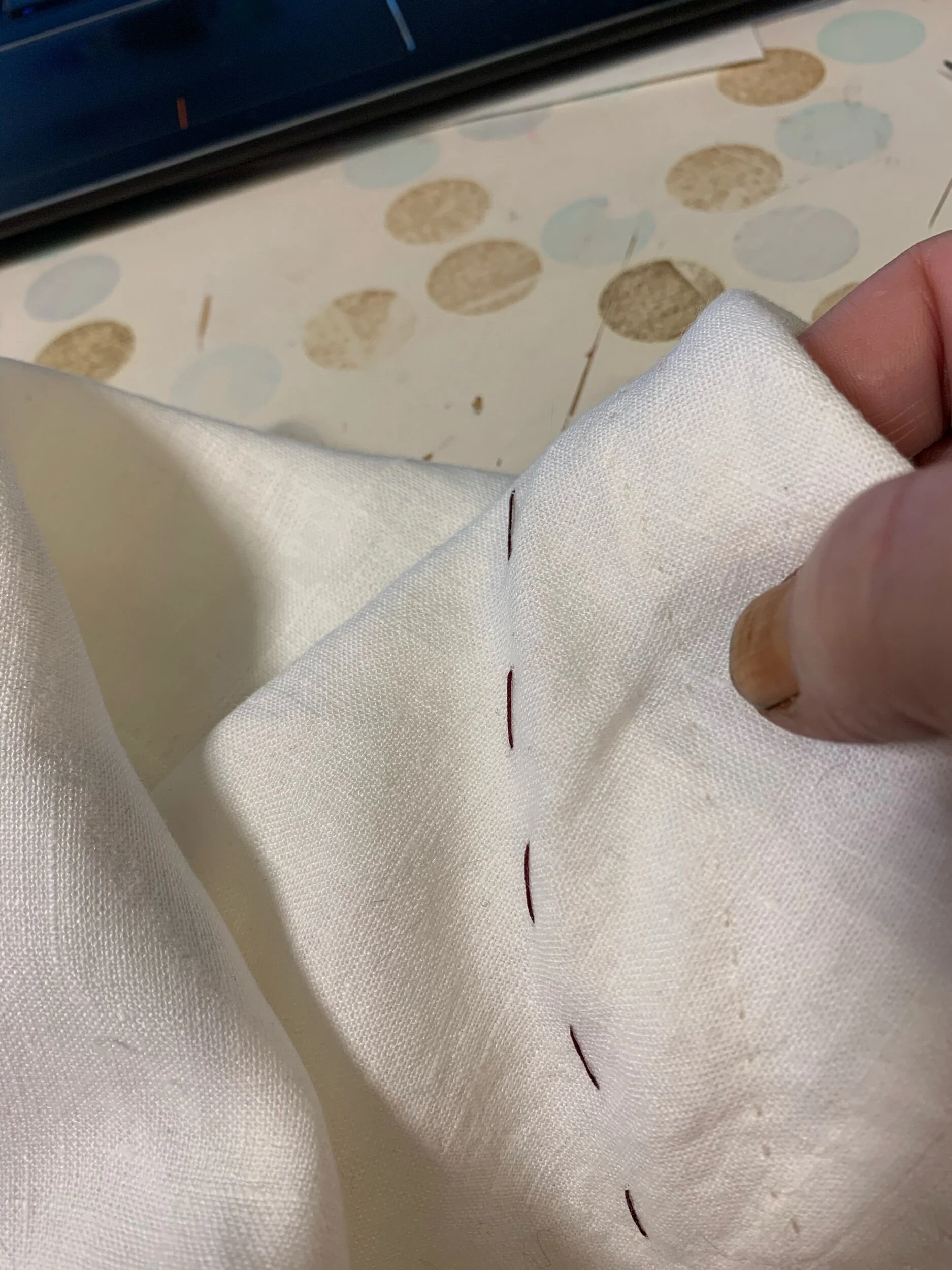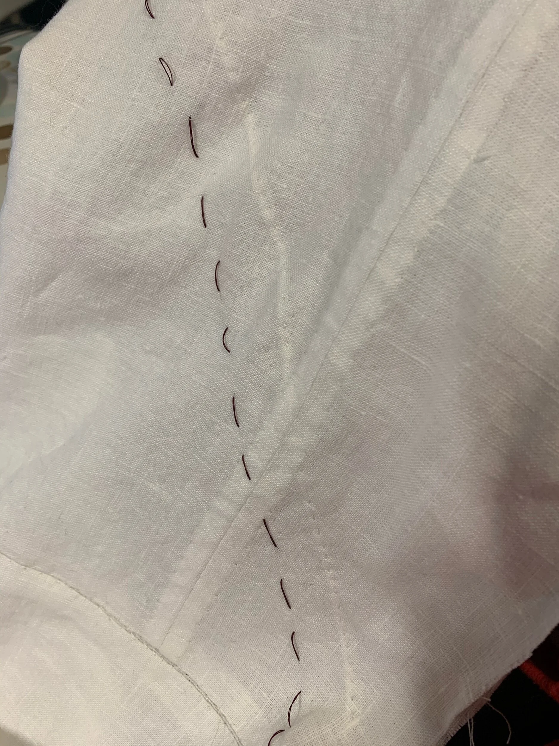 Well. That didn’t work as well as I could have wished. The lining layer puckered up between the tuck stitching and the basting stitches. I only sewed like ten inches, though, so whatever. Moving on…