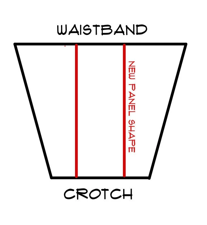 This had the end result of making the front of the crotch narrower than would fit nicely on the gusset, so that needed a bit of alteration, too.