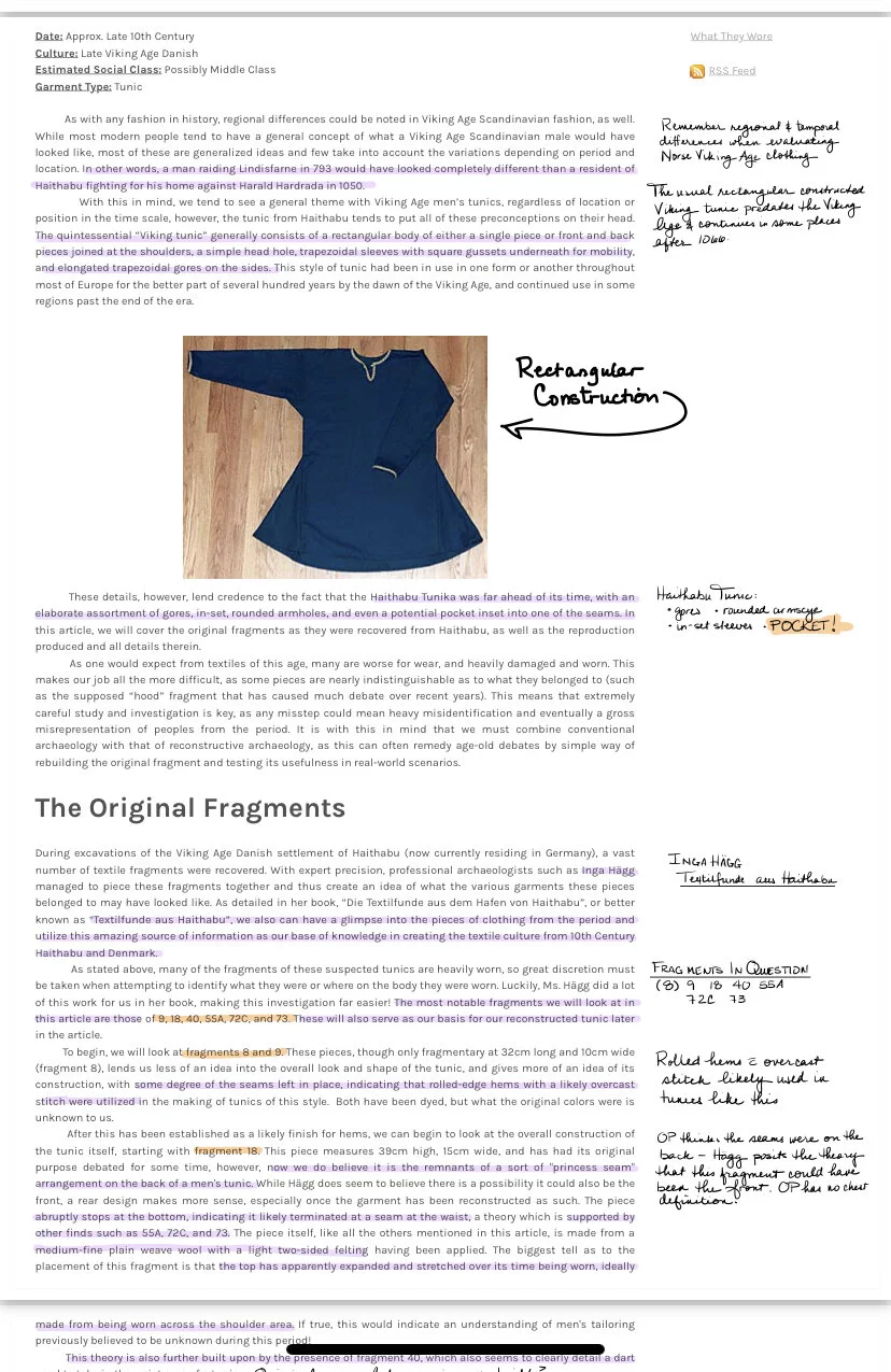 I’ve not been productive on the pants today, as I’ve been at my mom’s and we had errands to run. But here and there, I’ve been able to read part of an article about the Hedeby textile finds and the tunic the author built based on those.