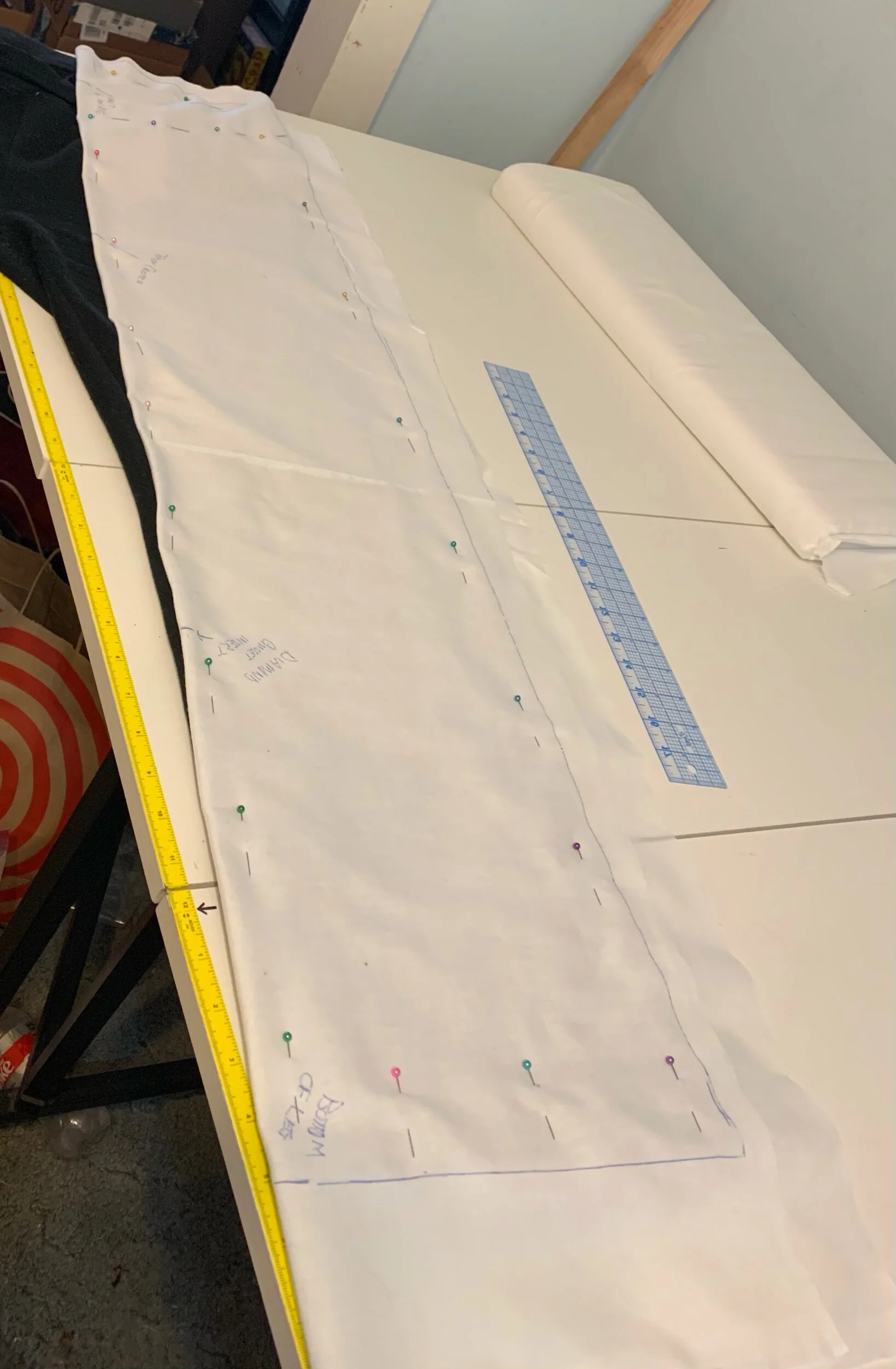 I decided that rather than trying to drape these on my own body, I'd pin fabric to a pair of sweatpants that fit well and go from there.