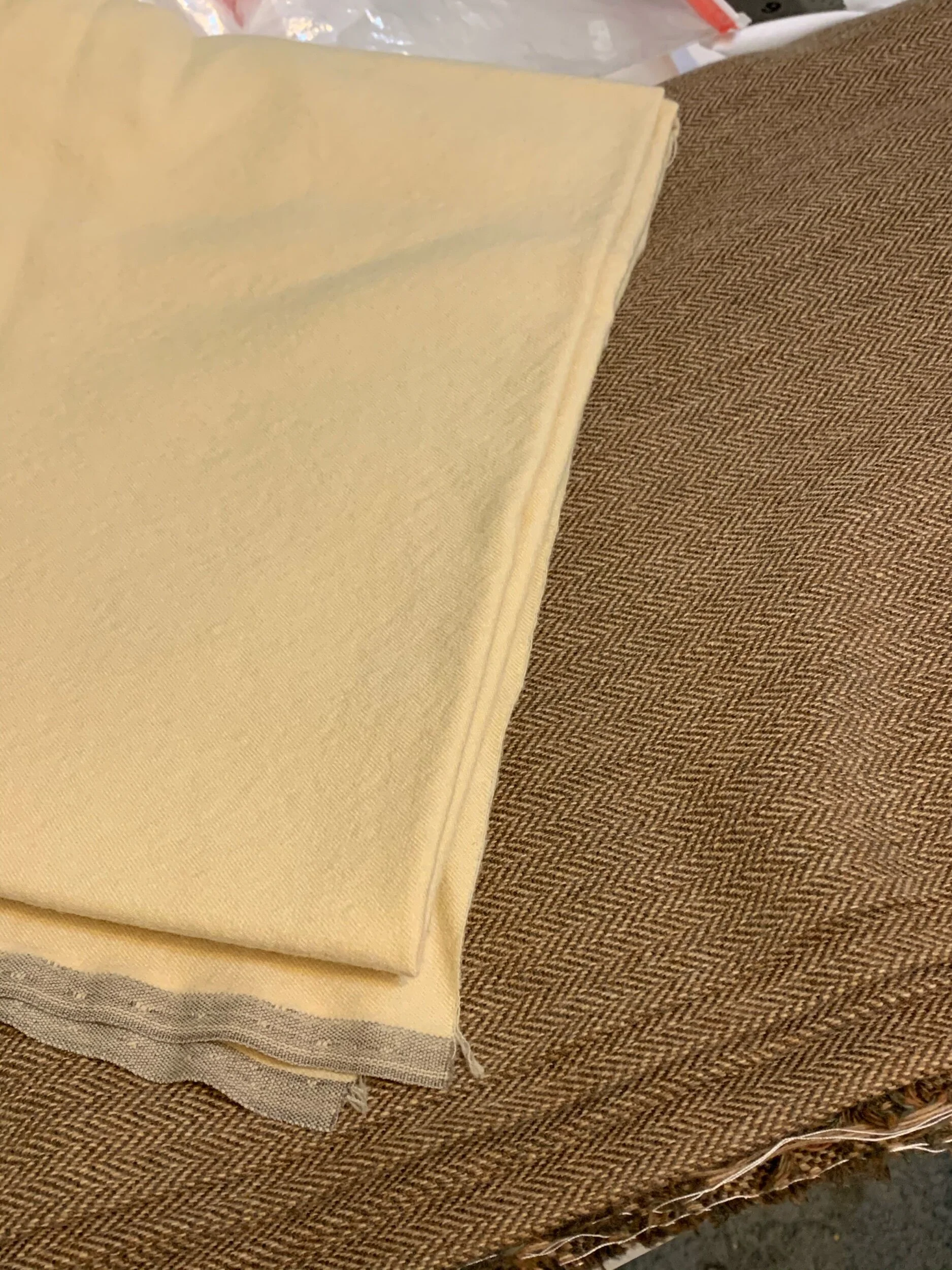 So I’m going to cut that inseam, maybe baste the outseams, and hit the hay. I’ll leave you with one more picture: the fabrics for my tunic and pants.