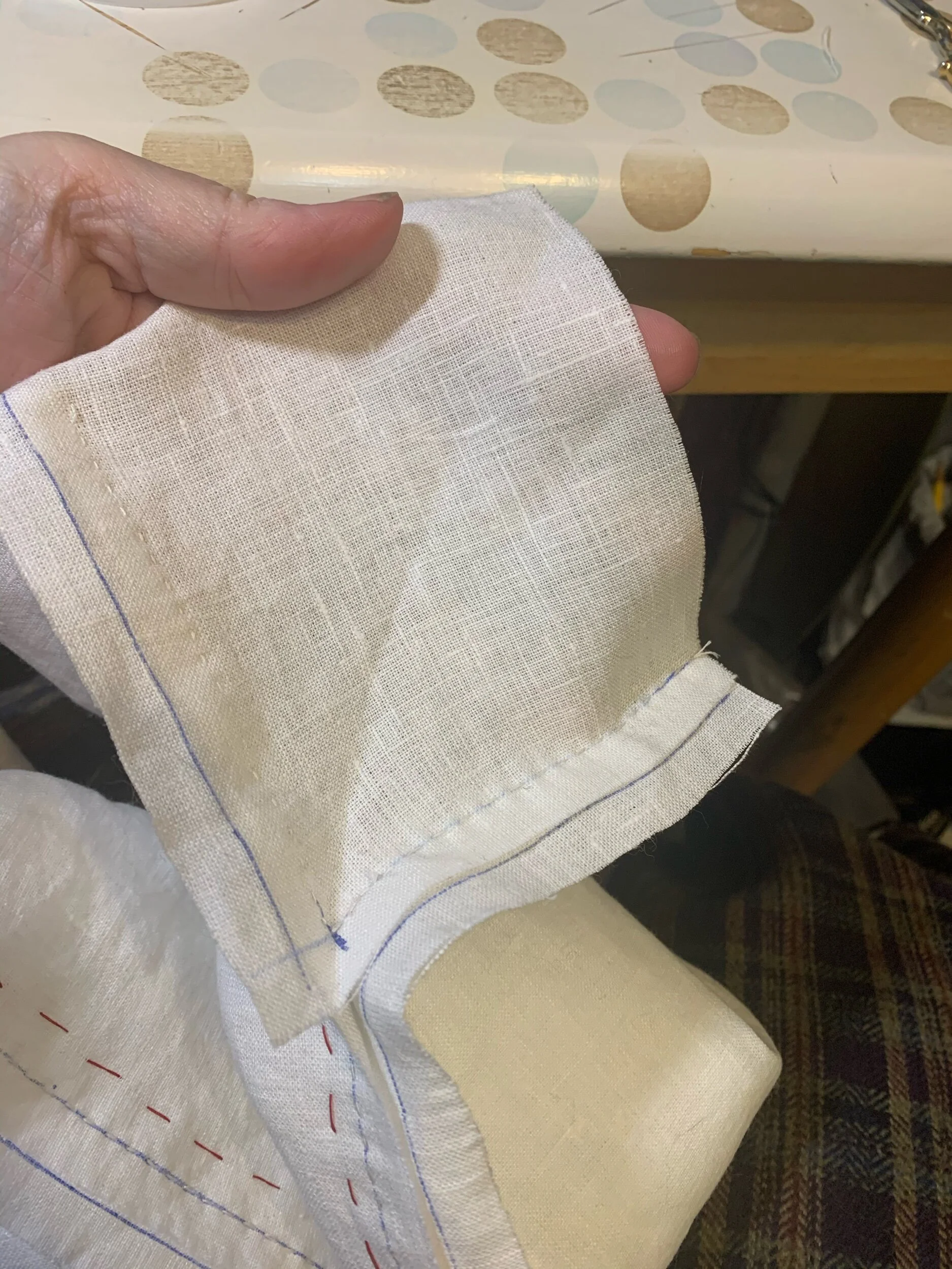 update 1: The gusset is installed and the sleeve is sewn shut, complete with taper. Now to cut away the excess fabric and fell the seams.